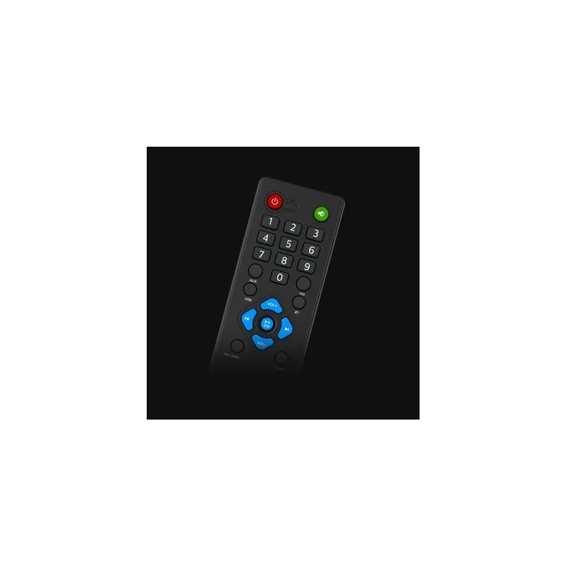 INCLUYE MANDO A DISTANCIA CON VARIAS PRESINTONÍAS DE EQ: Para mayor comodidad, hemos incluido un mando a distancia por infrarrojos para que pueda configurar los ajustes de audio de los altavoces, el volumen y la reproducción de música de forma inalámbrica. También puede seleccionar diferentes presintonías de EQ5 a través del mando a distancia para que se adapten a la música que esté escuchando, o a su estado de ánimo en el momento.