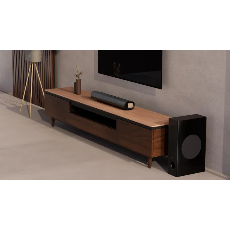 Con un diseño moderno y minimalista, la Barra de Sonido Creative Stage Pro 51MF8495AA000 se adapta perfectamente a cualquier entorno doméstico. Su forma estilizada permite colocarla fácilmente bajo el televisor o montarla en la pared, sin comprometer el estilo del espacio. A pesar de su tamaño compacto, ofrece un sonido envolvente y potente, gracias a su subwoofer integrado y a su sistema de audio optimizado. Esta combinación de estética y funcionalidad la convierte en una opción ideal para quienes valoran tanto el diseño como el rendimiento. Además, la conectividad HDMI ARC complementa su sencillez de instalación, ofreciendo una solución completa para mejorar la experiencia audiovisual.