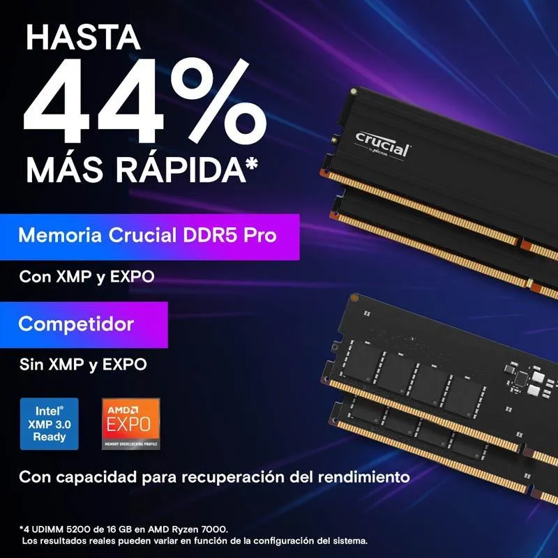 PRODUCTIVIDAD MEJORADA PARA CREATIVOS Y PROFESIONALES: Con 2x el ancho de banda de la generación anterior, Crucial DDR5 Pro permite un multitarea de siguiente nivel y un procesamiento más rápido para que puedas abordar incluso cargas de trabajo pesadas en menos tiempo.