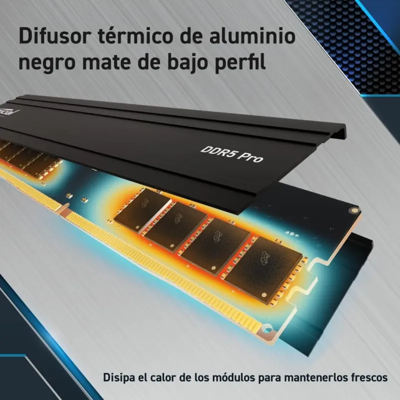 INNOVACIÓN EN MEMORIA: La tecnología DDR5 te coloca en la cima de la innovación. Los perfiles Intel® XMP y AMD EXPO facilitan un overclocking eficaz y fiable, maximizando así las capacidades de tu equipo.
