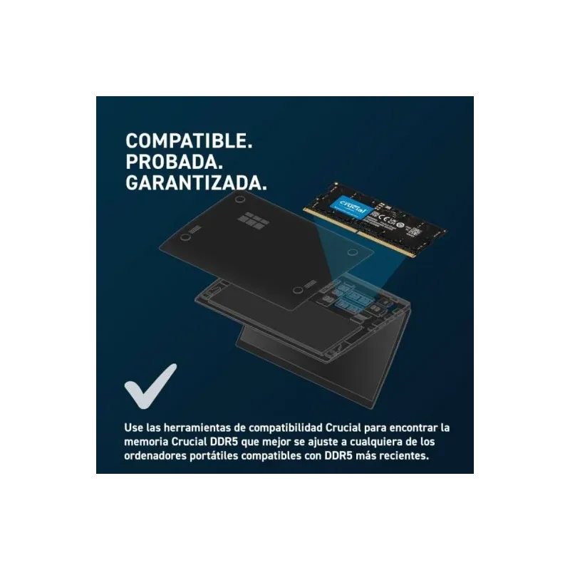 MÁS COMPATIBLE QUE UN CAMALEÓN: Otro aspecto importante a la hora de elegir una memoria es su compatibilidad con tu portátil. No quieres comprar una memoria que luego no funcione con tu dispositivo o que cause problemas de incompatibilidad. Por eso, la memoria SO-DIMM DDR5 de Crucial es la mejor opción para ti. Esta memoria es compatible con la mayoría de los portátiles que usan el estándar SO-DIMM y que admiten la tecnología DDR5. Además, su instalación es muy sencilla y no requiere ninguna configuración especial. Solo tienes que insertarla en la ranura correspondiente y listo. Con esta memoria, tu portátil será más compatible que un camaleón.