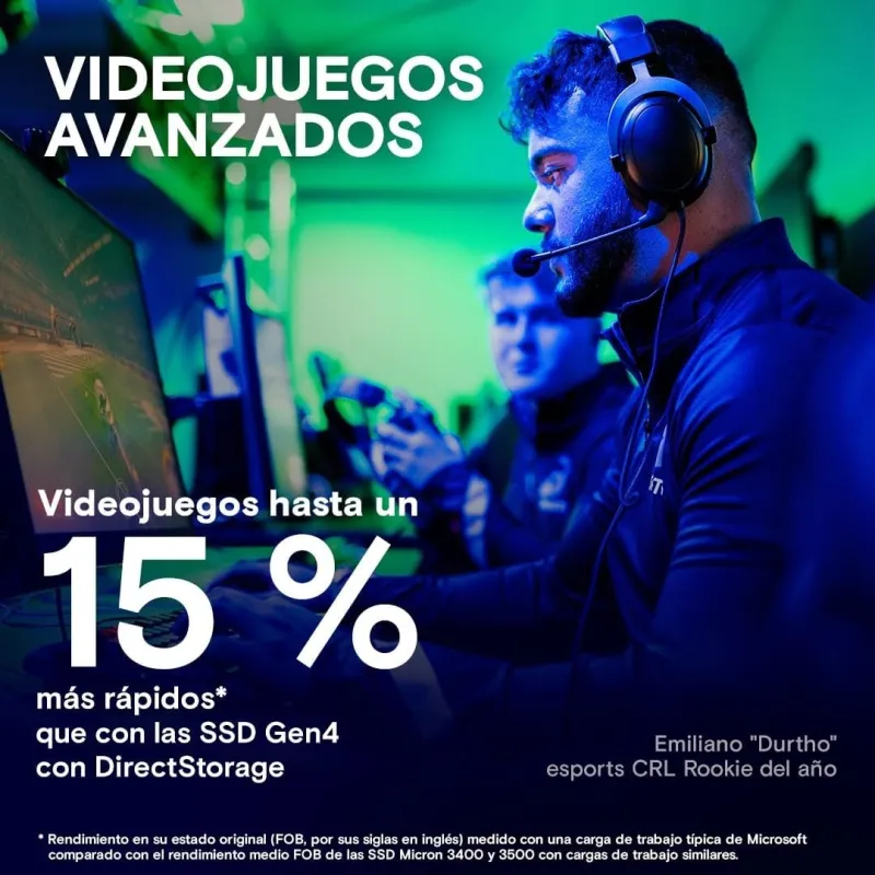 Gracias a su interfaz PCI Express 5.0, el Disco Duro SSD Crucial T705 HS 1TB CT1000T705SSD5 ofrece una velocidad de transferencia de datos excepcional que supera ampliamente a generaciones anteriores. Esta tecnología permite aprovechar toda la capacidad del bus de datos, reduciendo los cuellos de botella y mejorando el tiempo de respuesta del sistema. Ideal para quienes trabajan con archivos pesados o aplicaciones exigentes, la compatibilidad con NVMe 2.0 garantiza una comunicación eficiente entre el SSD y el resto del hardware. Esta combinación de tecnologías convierte al Disco Duro SSD Crucial CT1000T705SSD5 en una herramienta de alto rendimiento para profesionales y gamers que buscan fluidez y fiabilidad en cada tarea.
