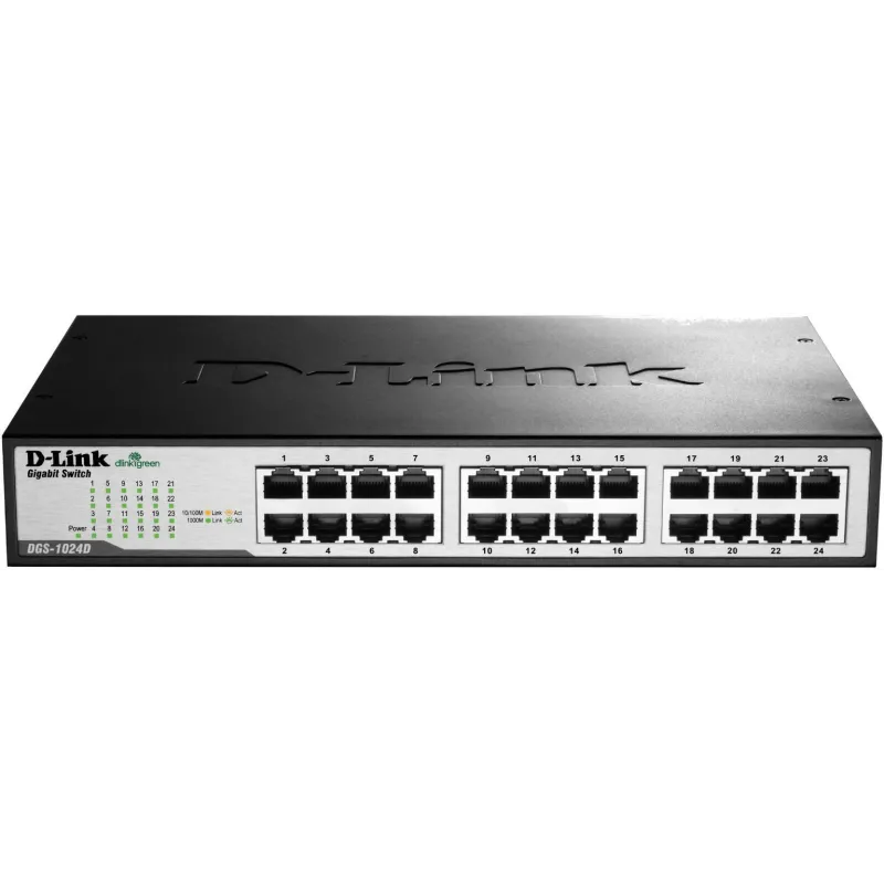 Switch D-Link DG-S1024D/E no Administrado con 24 Puertos Gigabit con capa de conmutación de 48 Gbit/s, color Negro