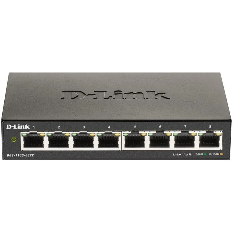 Switches de Sobremesa D-Link DGS-1100-08V2 Switch Gestionado 8 Puertos Gigabit Ethernet Velocidad de transferencia 10 Mbit/s / 100 Mbit/s / 1000 Mbit/s Negro