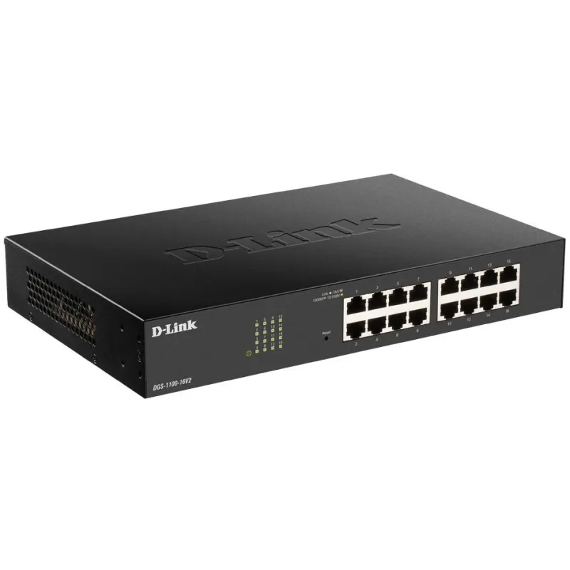 Switches de Sobremesa D-Link DGS-1100-16V2/E Switch Gestionado 16 Puertos Gigabit Velocidad de transferencia 10 Mbit/s / 100 Mbit/s / 1000 Mbit/s Negro