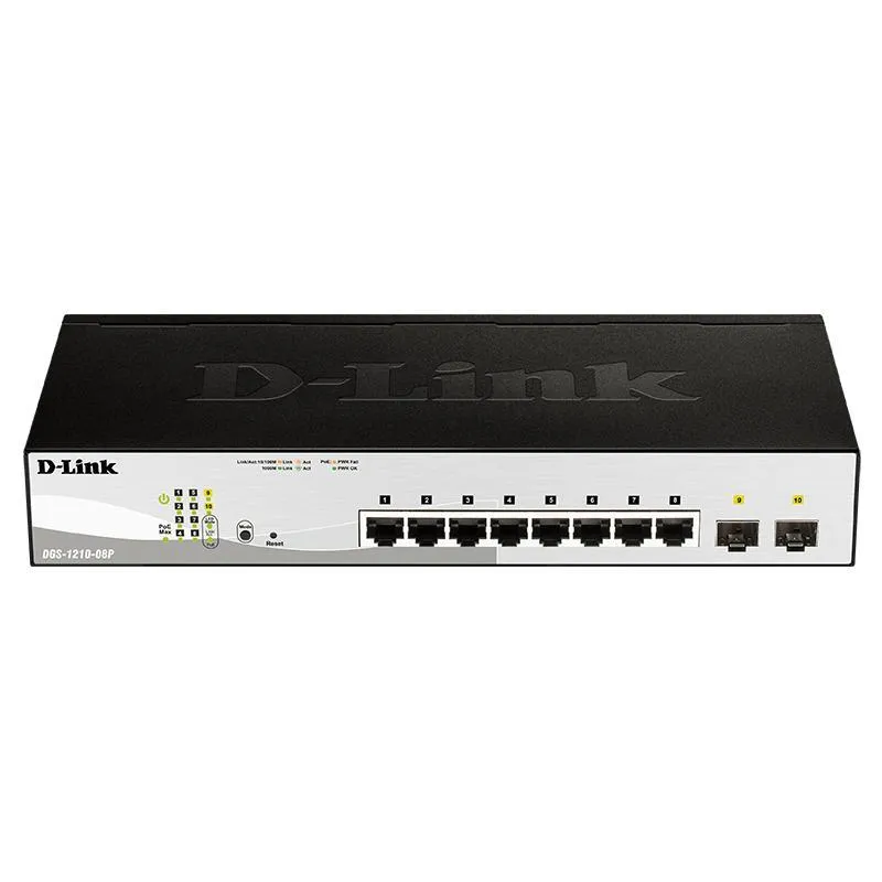 Switches de Sobremesa D-Link DGS-1210-08P/E Switch Smart 8 Puertos Gigabit PoE + 2 Puertos SFP Velocidad de transferencia 10 Mbit/s / 100 Mbit/s / 1000 Mbit/s