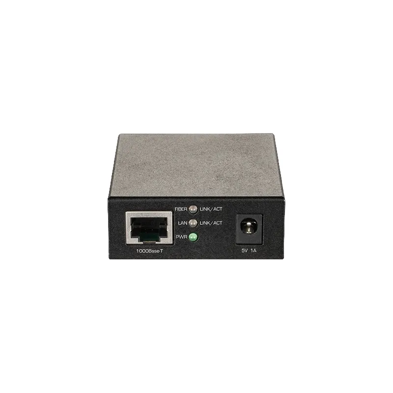 El conversor de medios autónomo 10/100/1000Base-T a SFP de D-Link convierte una conexión Ethernet en fibra, lo que permite conexiones de larga distancia.