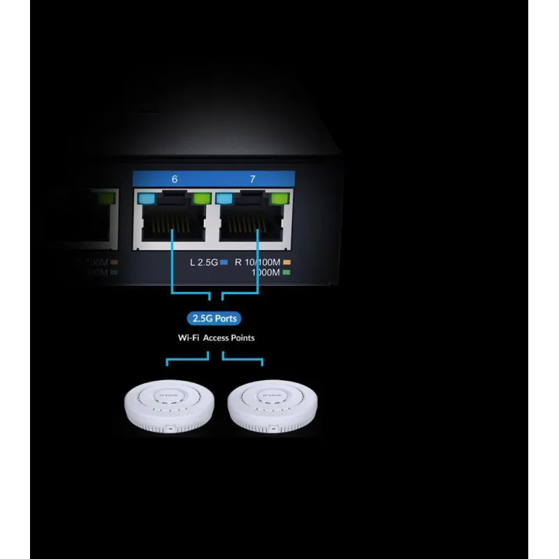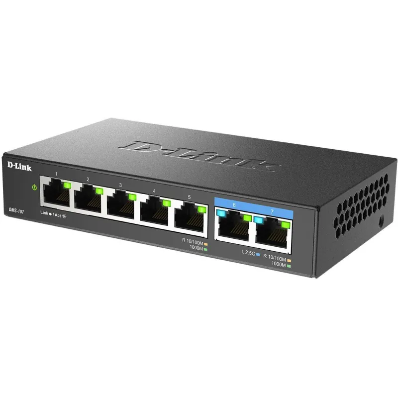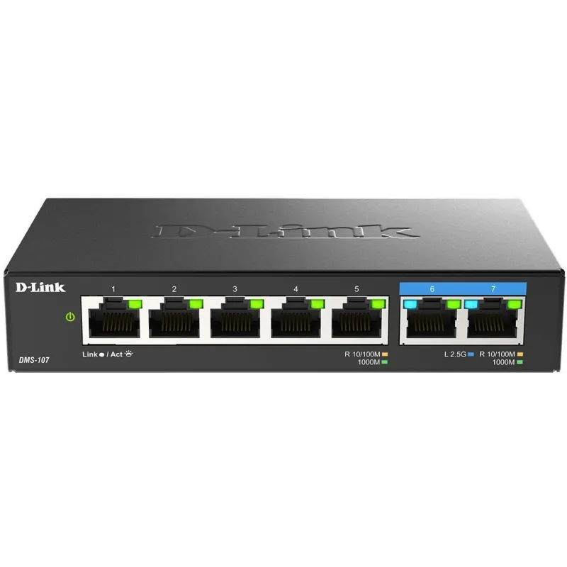 Switch D-Link DMS-107/E 7 Puertos No Administrado Velocidad de transferencia 10 Mbit/s / 100 Mbit/s / 1000 Mbit/s / 2500 Mbit/s Negro