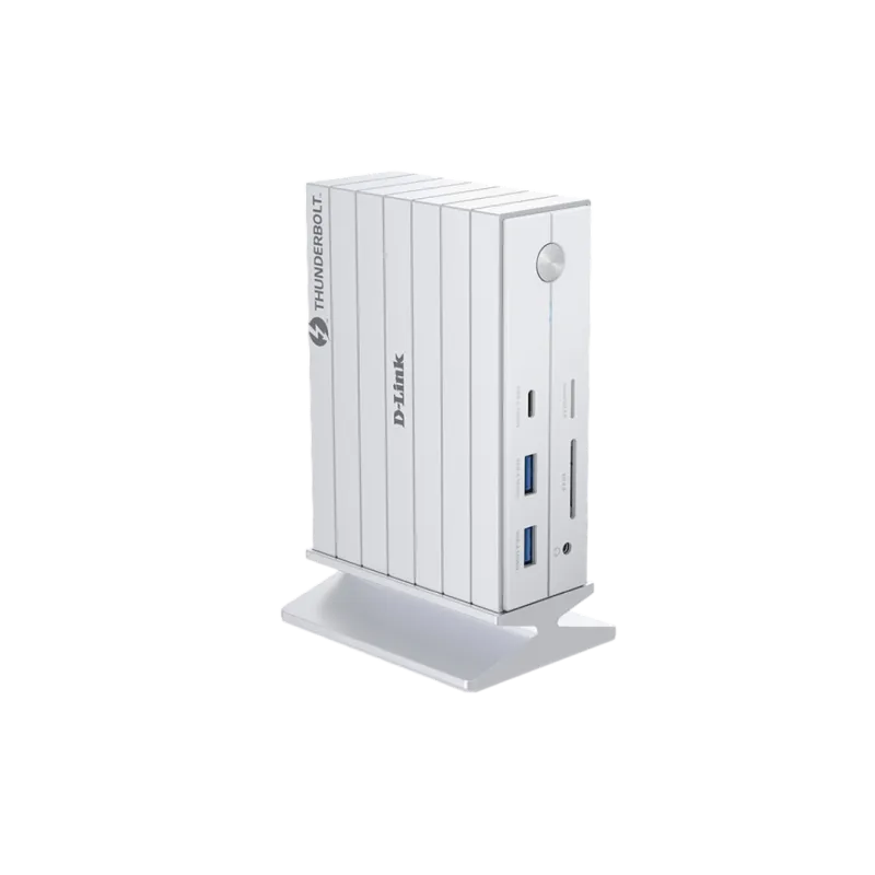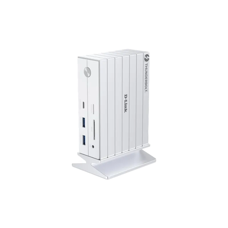 Docking station D-Link DUF-E01/E Thunderbolt 4 14 en 1 para ampliar puertos, conectar varios monitores y alimentar tu portátil con un único cable.