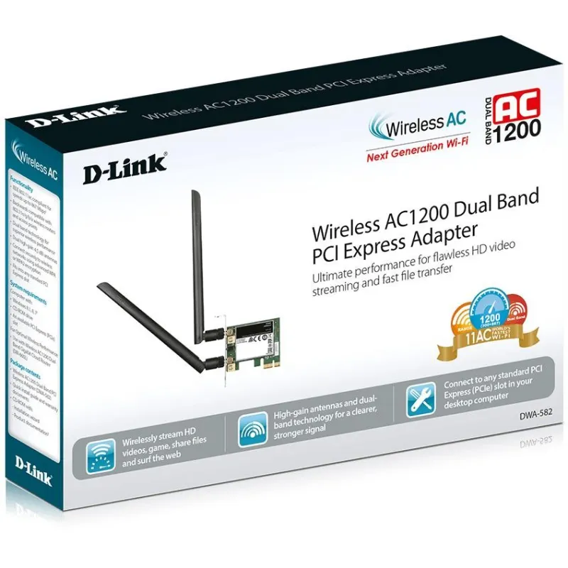 D-Link DWA-582 Tarjeta de Red WiFi AC1200 Dual Band PCIe
