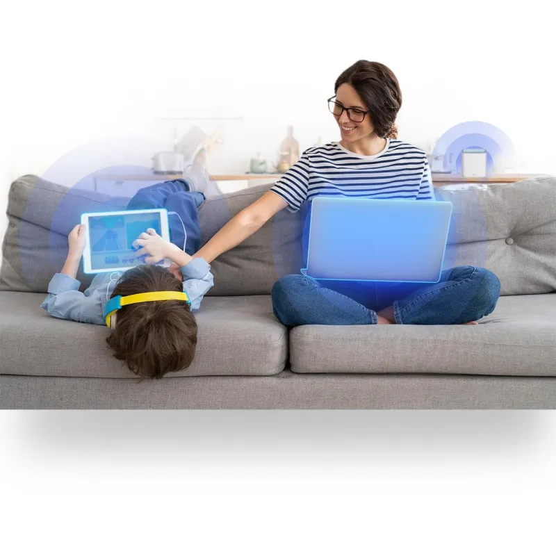 Experimente velocidades más rápidas de Wi-Fi 6 de última generación con gestión de canales y priorización con IA avanzada, para un acceso a Internet rápido y eficiente en todas las habitaciones, que elimina todos los puntos negros y las caídas de Wi-Fi con una sola solución.