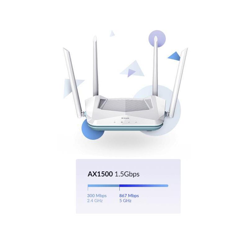 Router de Sobremesa D-Link R15 Eagle Pro AI AX1500 con Conectividad Wifi 6, Smart Router con 4 Antenas, Color Blanco