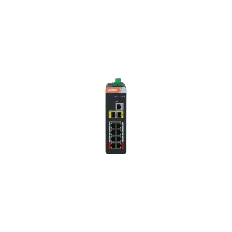 Switch Dahua IS4210-8GT-120 con capacidad de conmutación 20 Gbit/s, 8 puertos Ethernet Gigabit RJ-45 y soporte PoE