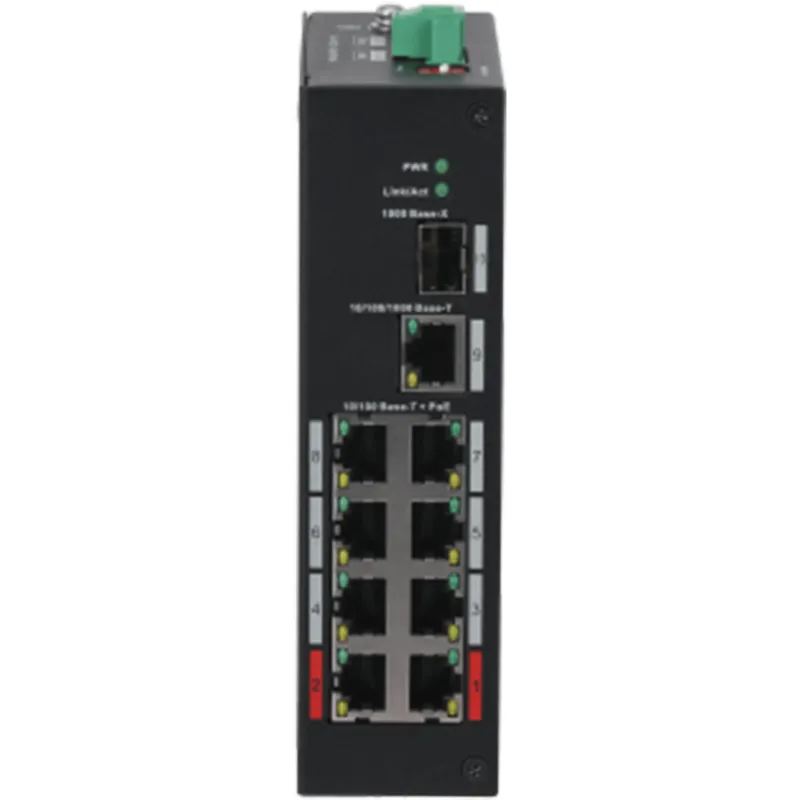 Switch Dahua PFS3110-8ET-96-V2 con capacidad de conmutación 7,6 Gbit/s, puertos Fast Ethernet 10/100 y soporte PoE de hasta 96 W