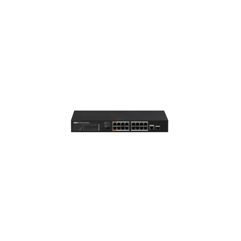 Switch Dahua PFS3117-16ET-135 con capacidad de conmutación 5,2 Gbit/s, 16 puertos Fast Ethernet 10/100 y soporte PoE+