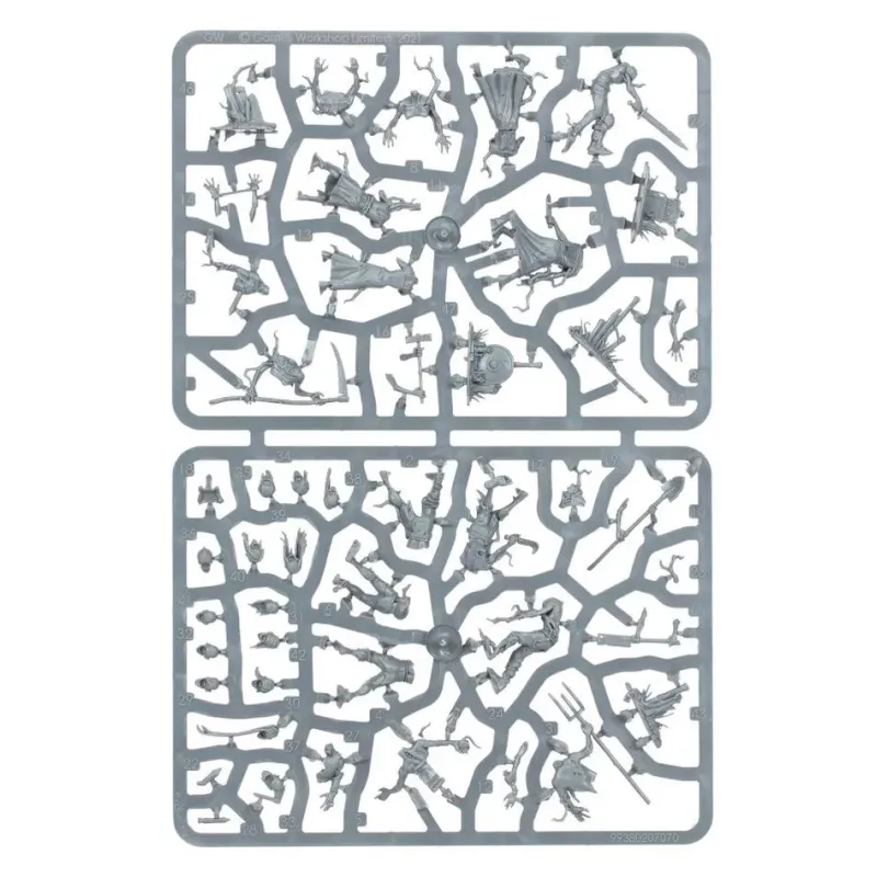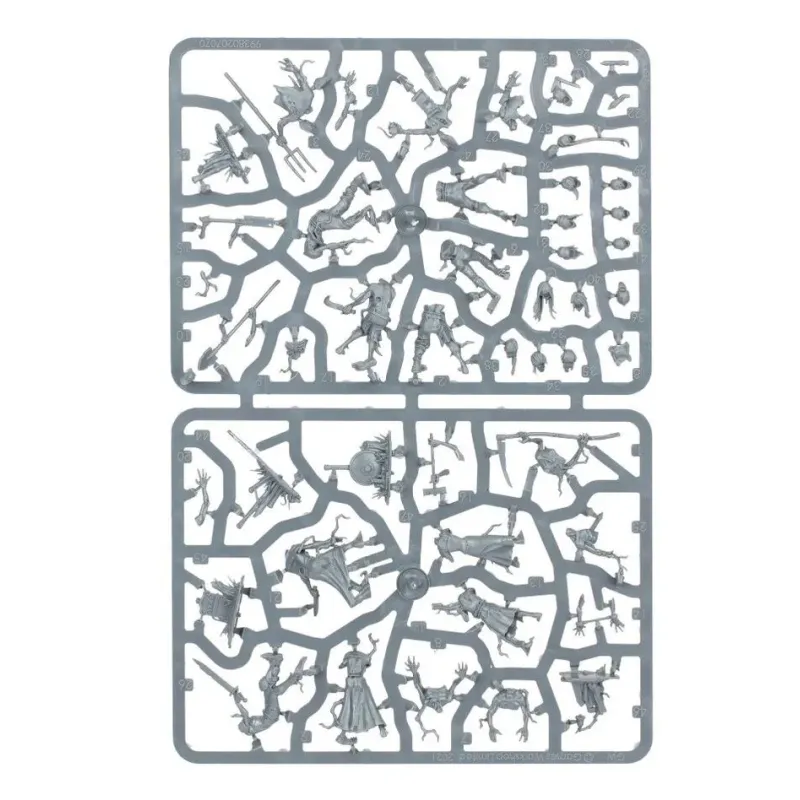 El núcleo del set es una matriz de plástico multicomponente que permite montar zombis en poses variadas, con diferentes cabezas y brazos. Esto se traduce en una unidad visualmente caótica y desagradable, muy acorde con la temática Deadwalker, que luce tanto en partidas competitivas como en campañas narrativas ambientadas en reinos desolados de Age of Sigmar.