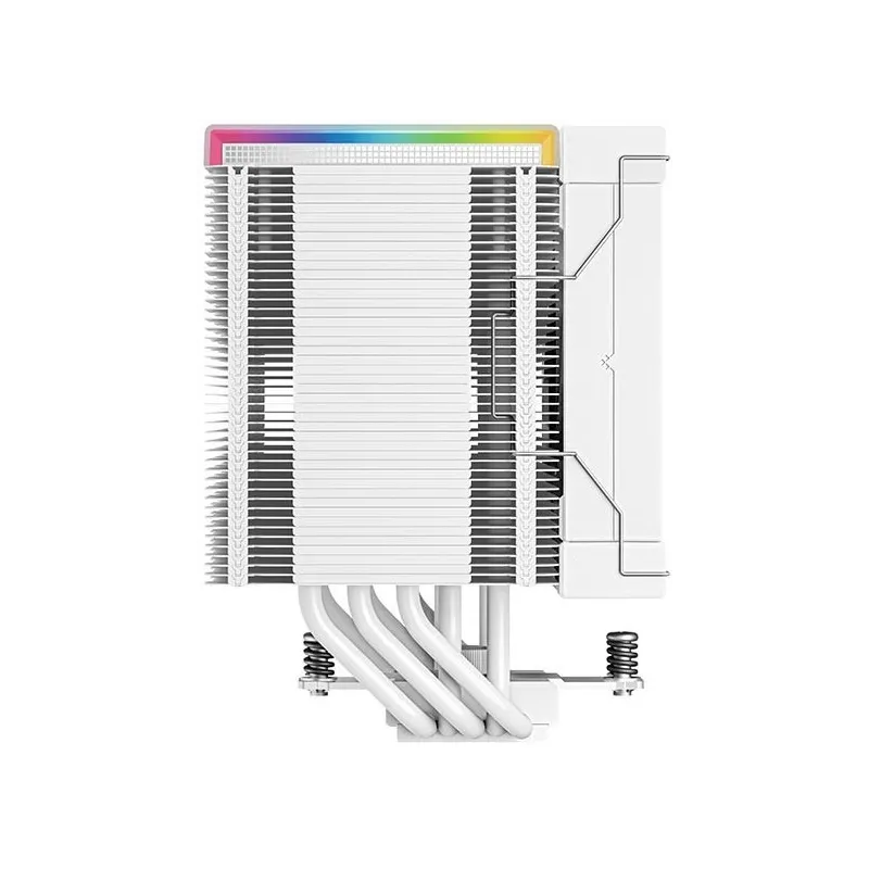 ESTÉTICA Y EFICIENCIA EN ARMONÍA: El diseño elegante en color blanco y el material de aluminio no solo proporcionan una estética moderna sino que también aseguran una disipación de calor superior. Con cinco tubos disipadores de calor y una iluminación LED multicolor, este refrigerador no solo mantiene tu sistema fresco, sino que también añade un toque de estilo a tu configuración.