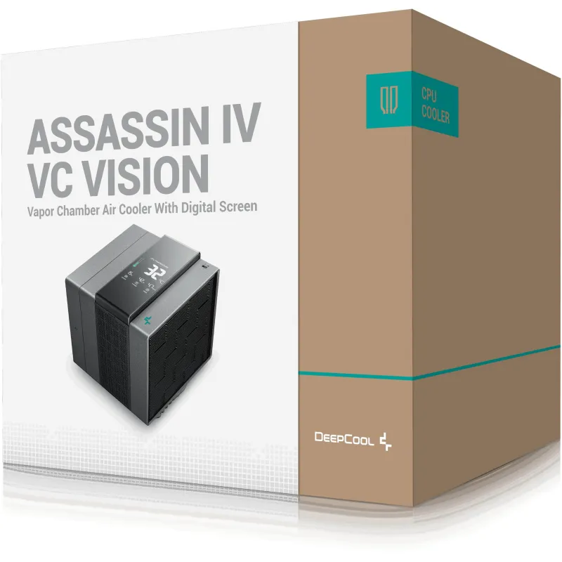 ¡LA SERIE DE ENFRIADORES DE AIRE INSIGNIA DE DEEPCOOL RECIBE UNA ADICIÓN DRÁSTICA EN FORMA DEL ASSASSIN IV VC VISION: La capacidad de enfriamiento recibe un buen impulso con la inclusión de una cámara de vapor en la base que lleva el TDP a 300W. Las mejoras no se detienen ahí, ya que también se ha añadido una pantalla digital de cuatro segmentos de alta gama al ya impresionante enfriador ASSASSIN IV. Una potencia de enfriamiento estético que tiene dos perfiles de sonido y una pantalla digital: los enfriadores de aire pueden tenerlo todo.