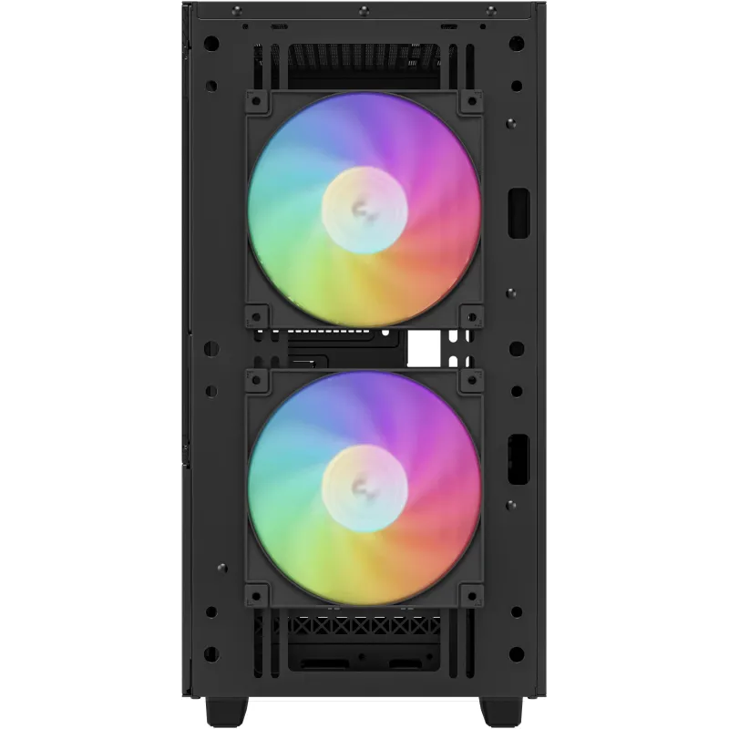 El chasis soporta una amplia variedad de opciones de enfriamiento, incluyendo 2 ventiladores frontales de 140 mm ya instalados, con capacidad para un máximo de 3 ventiladores frontales (120 o 140 mm), 1 ventilador trasero de 120 mm instalado, y soporte para ventiladores superiores (hasta 2 de 120 o 140 mm). También es compatible con radiadores frontales de hasta 360 mm, radiadores traseros de 120 mm, y radiadores superiores de hasta 240 mm.