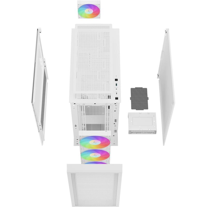 CH560 WH DE ALTO FLUJO DE AIRE REINVENTARON: UN SOPLADO DE AIRE FRESCO El CH560 WH proporciona un flujo de aire excepcional desde todos los lados de la caja, desde el frente de alto flujo de aire hasta el panel lateral de vidrio templado híbrido, siempre hay aire fresco disponible para los componentes modernos que consumen mucha energía.