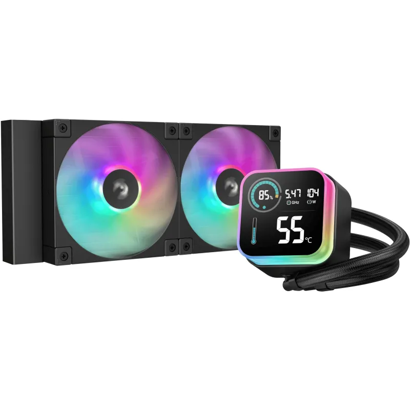 El Kit de refrigeración líquida DeepCool LQ240 Negros combina tecnología avanzada con un diseño atractivo. Su sistema de iluminación LED multicolor, controlado mediante un conector de 3 pines, permite personalizar la apariencia del equipo. La velocidad del ventilador 2400 RPM garantiza un flujo de aire constante que mejora el rendimiento térmico. El radiador de aluminio 282 mm ofrece una excelente capacidad de disipación sin ocupar demasiado espacio. Además, el consumo energético es eficiente, con solo 2,64 W para los ventiladores y 4,2 W para la bomba. Una solución ideal para quienes buscan alto rendimiento y personalización.
