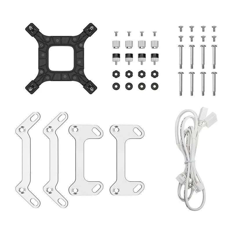 En términos de eficiencia energética, este sistema opera con un consumo energético del ventilador de solo 2,64 W y de la bomba de 4,2 W, manteniendo un equilibrio perfecto entre potencia y ahorro energético. Con un peso total de 1,5 kg, es fácil de instalar gracias al kit de montaje incluido en el paquete, que proporciona todos los tornillos y soportes de CPU necesarios.