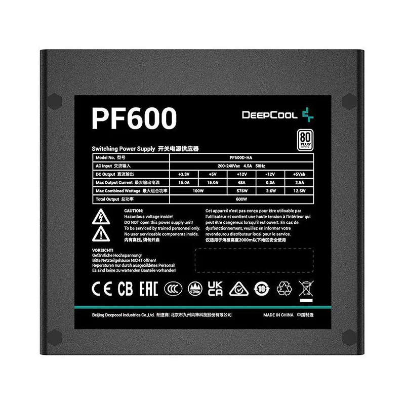 PF600: La fuente de alimentación DeepCool serie PF ofrece un rendimiento energético seguro y estable con una fiable eficiencia 80 PLUS Standard y un precio asequible.