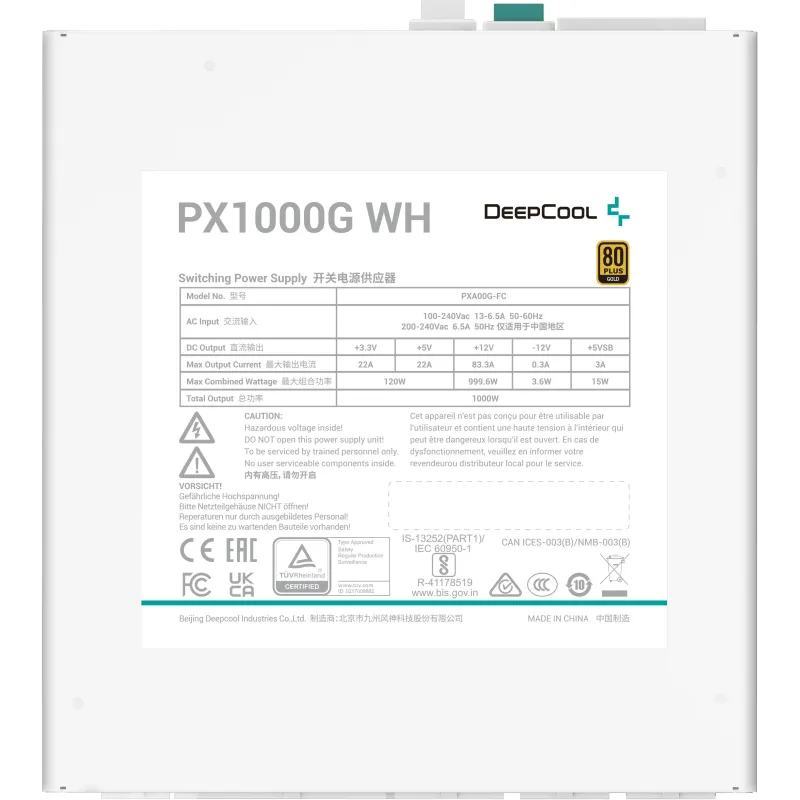 PX1000G: La DeepCool PX1000G es una fuente de alimentación de nuevo diseño que cumple con el último estándar ATX 3.0. Con puertos dedicados de 12 VHPWR, 2 EPS y 3 PCI-e, el PX1000G proporciona energía estable para una amplia gama de componentes.