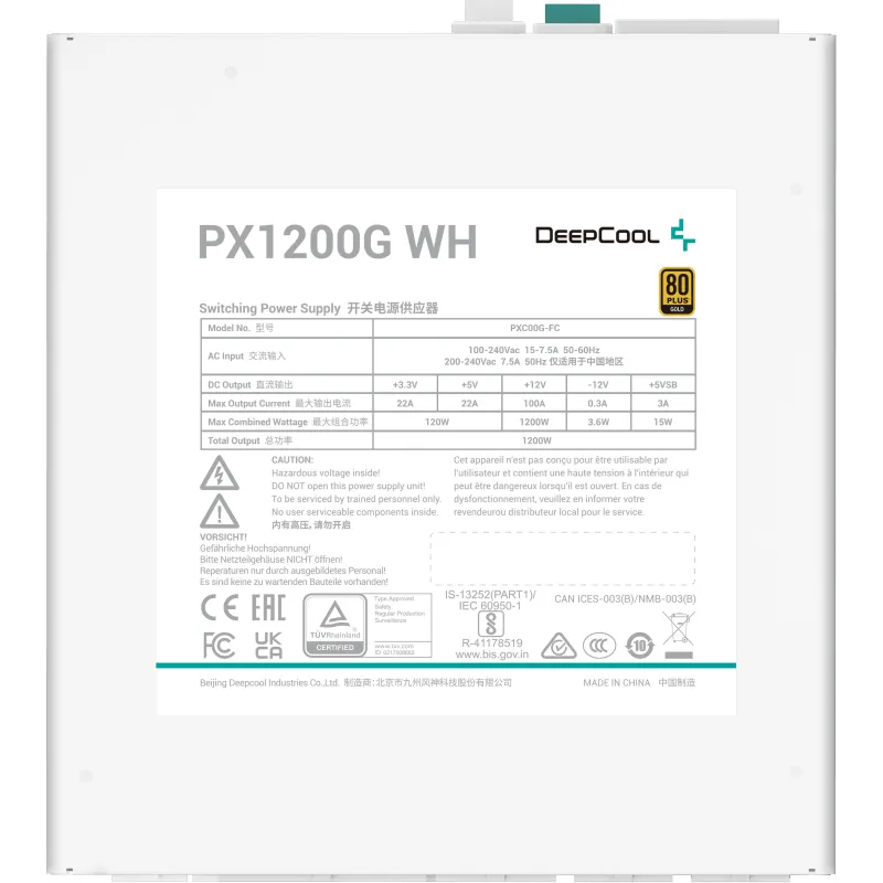 PX1200G: La DeepCool PX1200G es una fuente de alimentación de nuevo diseño que cumple con el último estándar ATX 3.0. Con puertos dedicados de 12 VHPWR, 2 EPS y 3 PCI-e, el PX1200G proporciona energía estable para una amplia gama de componentes.