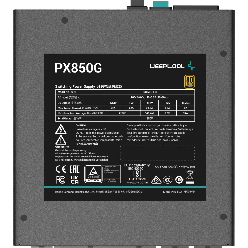 PX850G: La DeepCool PX850G es una fuente de alimentación de nuevo diseño que cumple con el último estándar ATX 3.0. Con puertos dedicados de 12 VHPWR, 2 EPS y 3 PCI-e, el PX850G proporciona energía estable para una amplia gama de componentes.