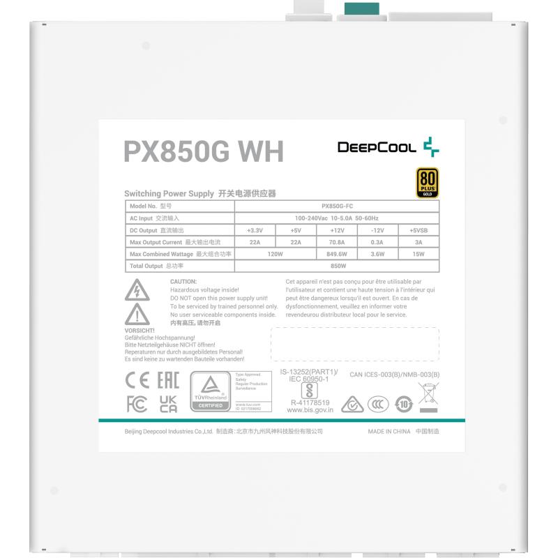 PX850G: La DeepCool PX850G es una fuente de alimentación de nuevo diseño que cumple con el último estándar ATX 3.0. Con puertos dedicados de 12 VHPWR, 2 EPS y 3 PCI-e, el PX850G proporciona energía estable para una amplia gama de componentes.