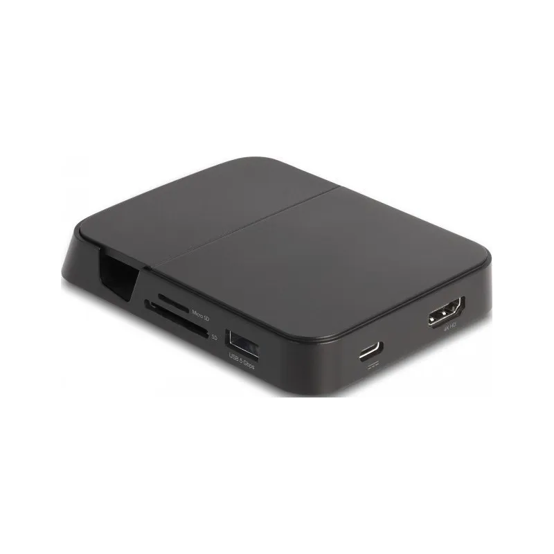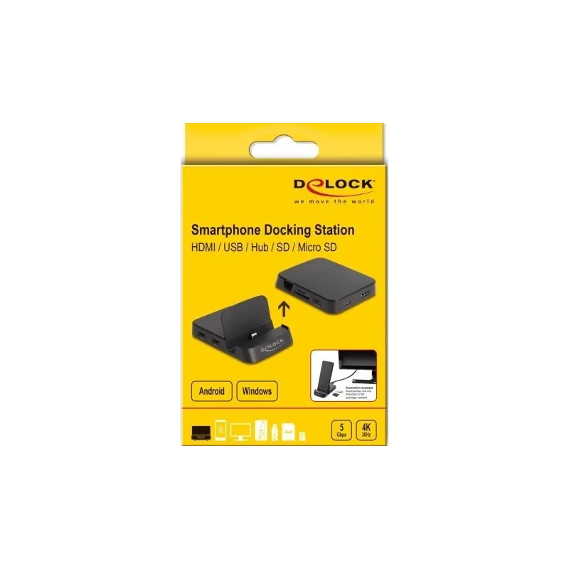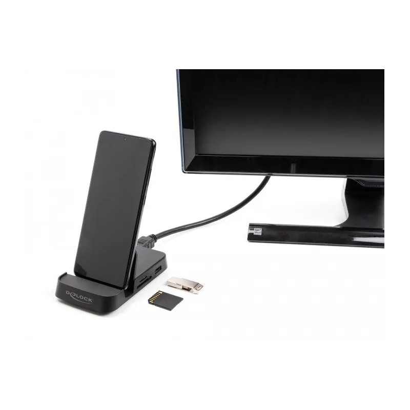 Esta estación de acoplamiento para smartphone de Delock es el complemento ideal para su escritorio o cuando viaja y convierte un smartphone en un completo sistema de escritorio. Además de 3 puertos USB Tipo-A aptos para plug & play, también ofrece una interfaz HDMI, así como una ranura SD y Micro SD para tarjetas de memoria. En la salida HDMI se puede utilizar un monitor con una resolución máxima de hasta 4K 30 Hz.