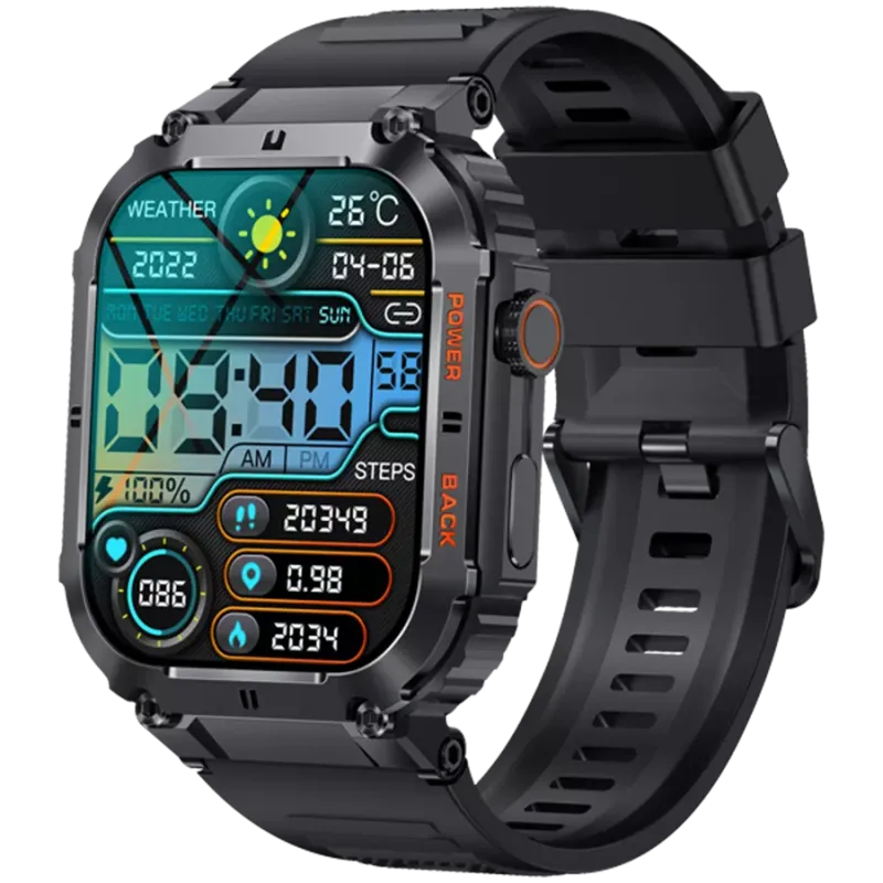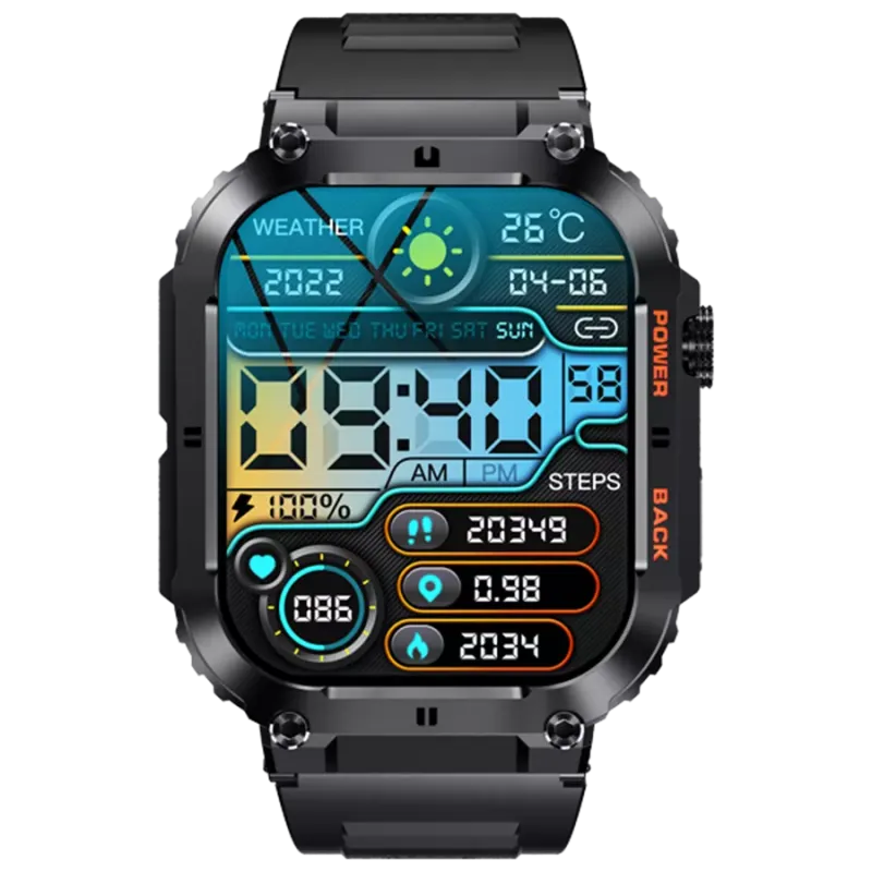 - Smartwatch, Bluetooth 5.0, sensor de frecuencia cardíaca, presión arterial, oxígeno en sangre, función de llamada, rastrea tus pasos y sueño, muestra identificador de llamadas y notificaciones por SMS y correos electrónicos