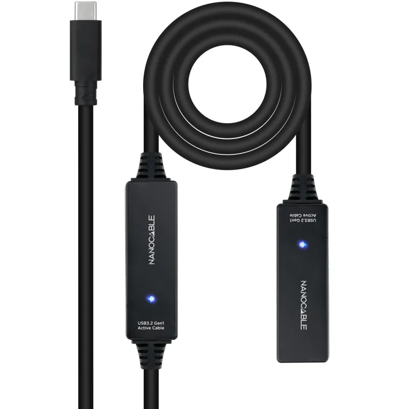 Nanocable 10.01.1312 Cable USB 3.2 Gen1 Prolongador con Amplificador USB-C a USB-C Macho/Hembra 10M Negro
