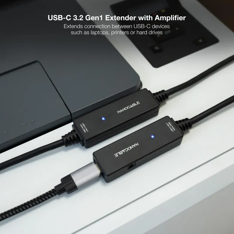 Permite prolongar cables USB-C con longitud de más de 10 metros, uniendo varios cables prolongadores con amplificadores.