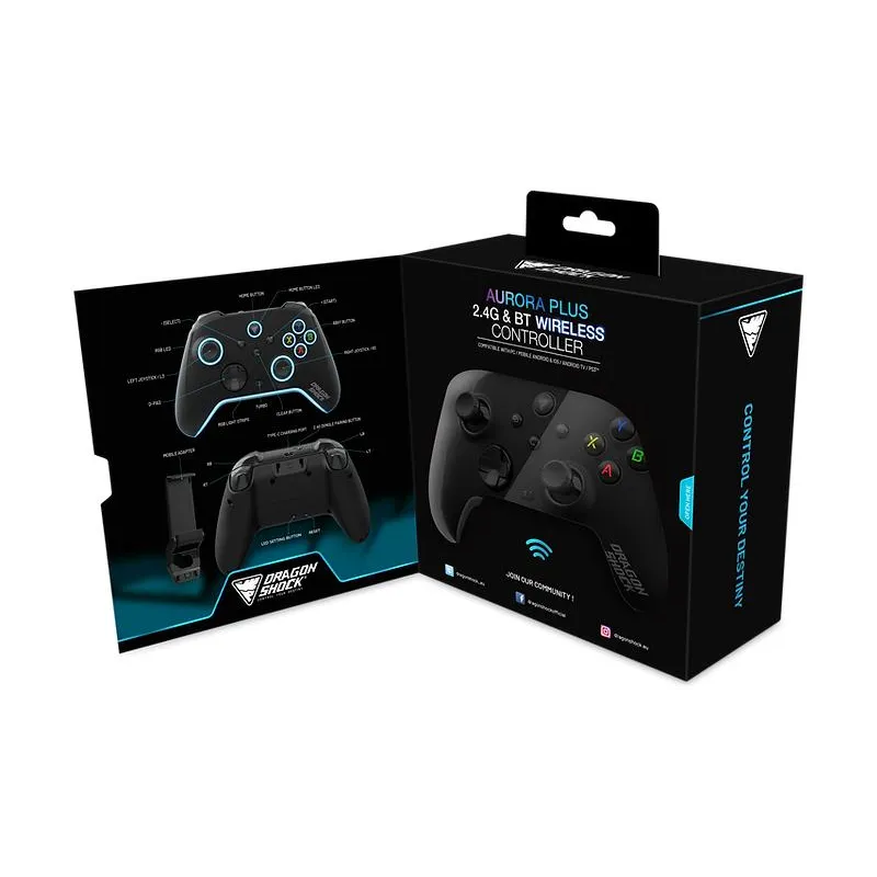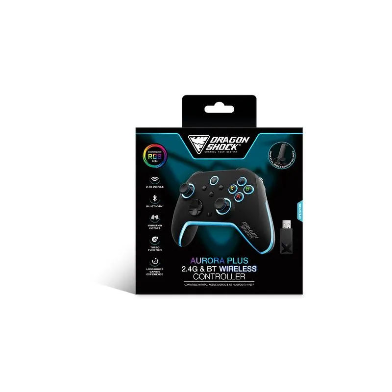Gamepad Dragonshock Aurora Plus con batería 800mAh, conectividad Bluetooth 2.4 GHz y compatibilidad con Android, PC, iOS y PS3