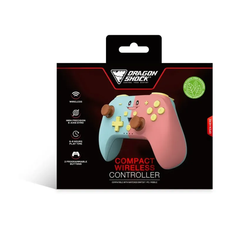 El DragonShock PopTop Compact Wireless Controller Blue & Pink es un mando inalámbrico compacto pensado para alternar Nintendo Switch y PC con un extra clave: giroscopio de 6 ejes y botones traseros para atajos.