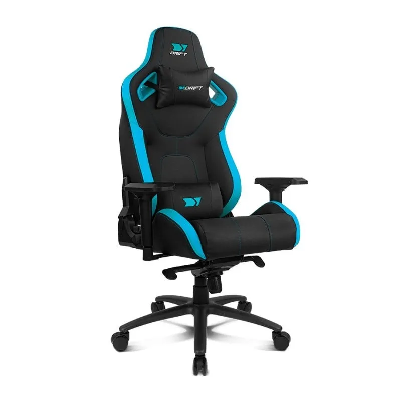 La Silla Gaming Drift DR600BL incluye reposabrazos 4D ajustables en altura, ángulo, profundidad y lateralidad, lo que permite un ajuste preciso según las necesidades del usuario. También cuenta con cojín reposacuellos y almohada lumbar para mejorar aún más la postura durante largas sesiones. Su base metálica con ruedas de poliuretano de 6 cm de diámetro asegura una movilidad suave y silenciosa. La altura del asiento es regulable entre 53 y 59 cm gracias a un cilindro de gas clase 4. Con un diseño transpirable y materiales resistentes, esta silla no solo ofrece estilo, sino también funcionalidad y confort durante horas de uso intensivo.