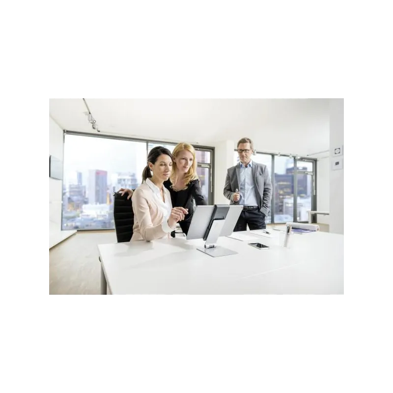 Este Soporte Durable 893023 es la solución ideal para quienes buscan un soporte resistente y funcional para su tablet o UMPC. Diseñado para uso en interiores, este soporte pasivo se adapta perfectamente a cualquier escritorio gracias a su sistema de montaje de abrazadera. Su estructura combina material ABS y aluminio con acero para ofrecer una base sólida y duradera. Además, permite una orientación horizontal o vertical, lo que lo hace versátil para distintas necesidades de visualización. Con un diseño ajustable y un ángulo de rotación 360°, proporciona una experiencia ergonómica óptima. Su acabado en color plata le aporta un toque moderno y elegante, integrándose fácilmente en cualquier entorno de trabajo o estudio.