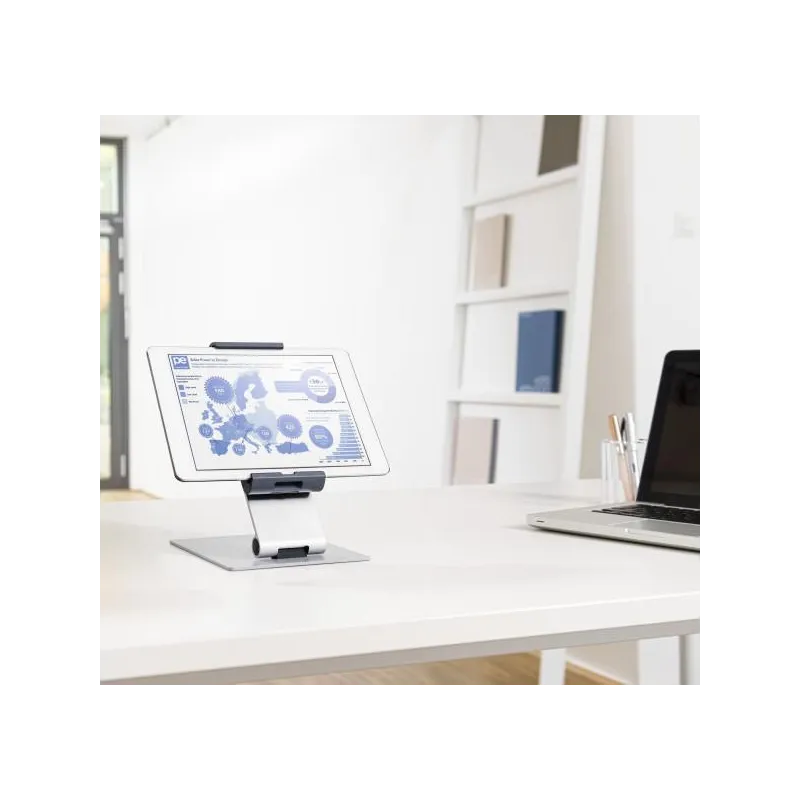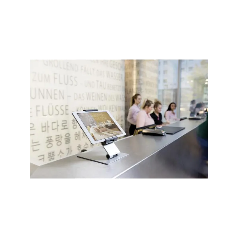 Soporte Durable 893023 para tablet con ángulo de rotación 360°, fabricado en material ABS y aluminio, orientable en horizontal