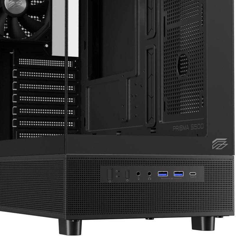 Equipada con hasta 7 ranuras de expansión y puertos como 2 puertos USB 3.2 Gen 1 y 1 puerto USB Tipo C 3.2 Gen 2, tendrás acceso fácil y rápido a tus dispositivos. El panel frontal también incluye puertos de entrada y salida de audio, y con la gestión de cables integrada, podrás mantener tu equipo organizado y libre de cables visibles.
