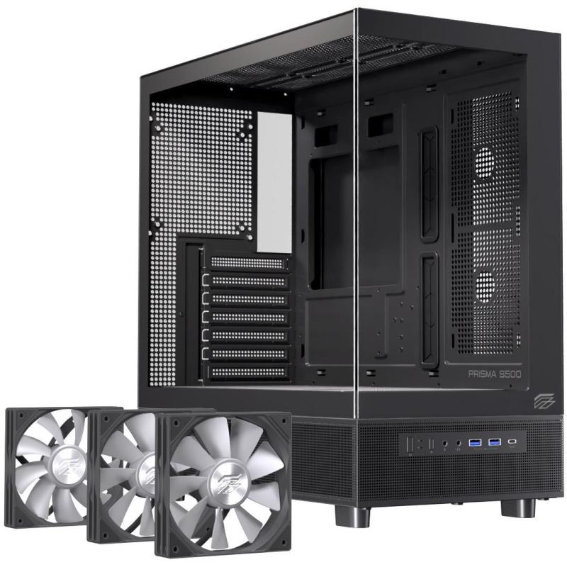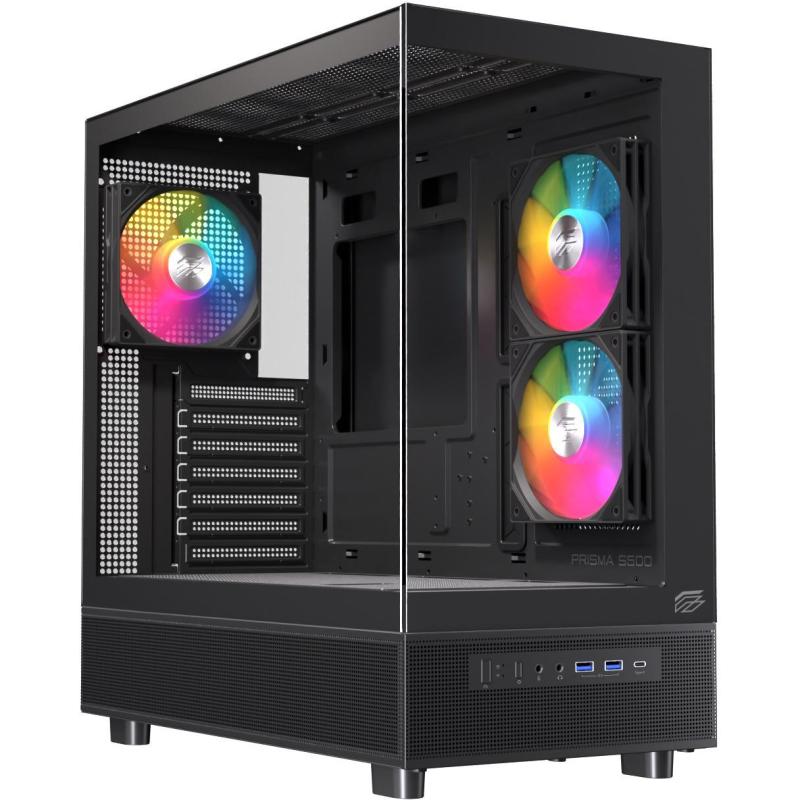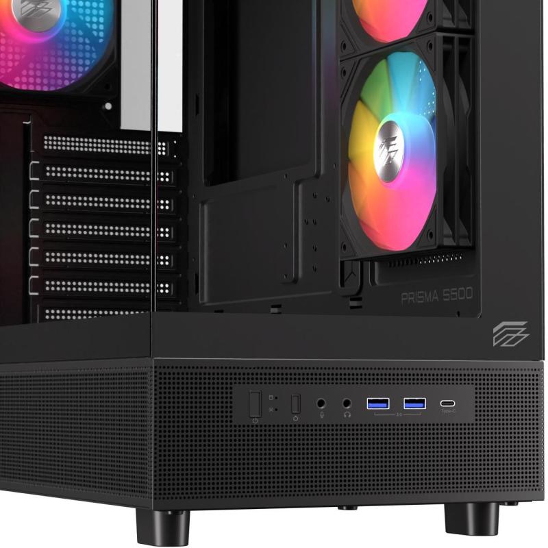 MUESTRELO TODO: No pierda rendimiento con el diseño panorámico. Torre Einarex Prisma S500 Core RGB Black ofrece una experiencia de visión completa a través de paneles de cristal templado, al tiempo que mantiene un excelente flujo de aire. Su disposición bien diseñada garantiza tanto la estética como el rendimiento de refrigeración, creando un escaparate perfecto.