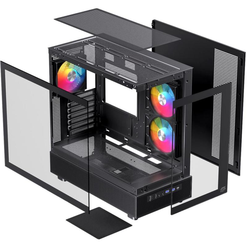 Torre Einarex Prisma S500 Core RGB Black ATX micro Mini-ITX con panel de vidrio templado iluminación RGB