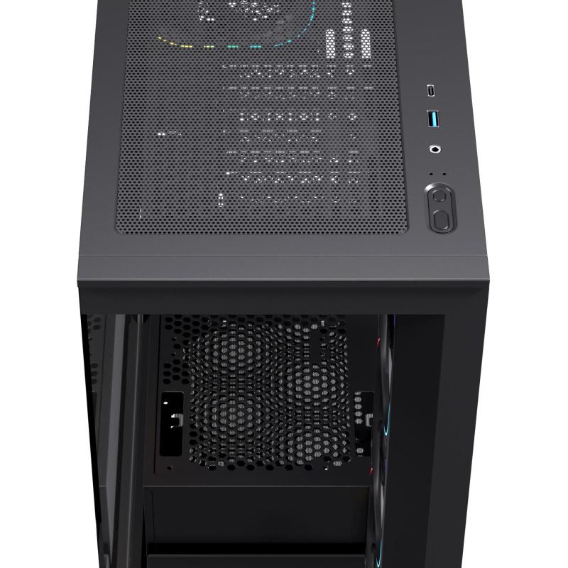 CONEXIONES RÁPIDAS Y ACCESIBLES: Con puertos USB 3.2 Gen 1 y USB Tipo C en el panel frontal, esta torre PC con panel de vidrio templado facilita la conexión de periféricos y dispositivos de almacenamiento externo, asegurando una experiencia de usuario fluida y eficiente.