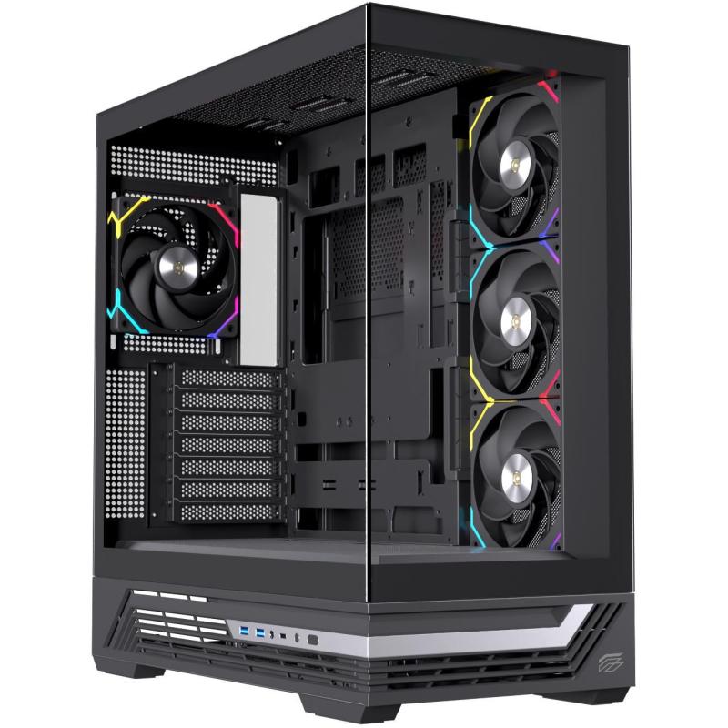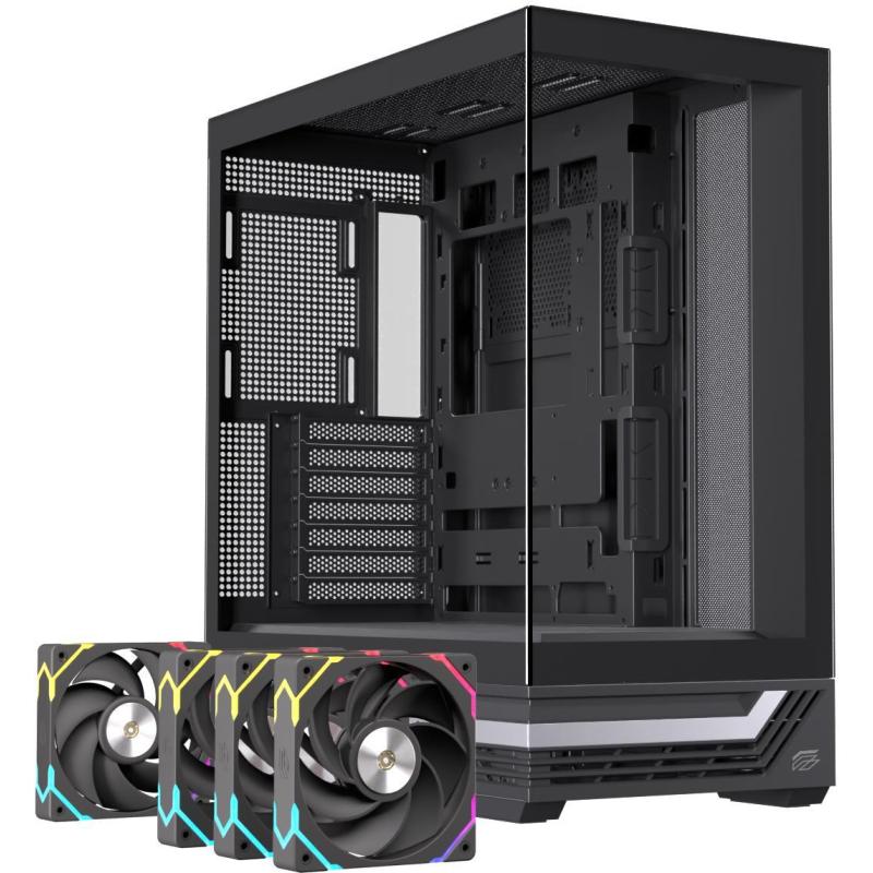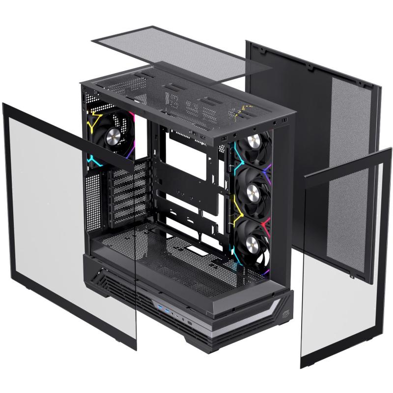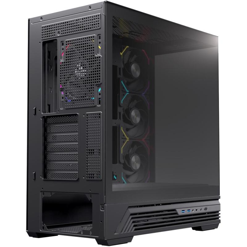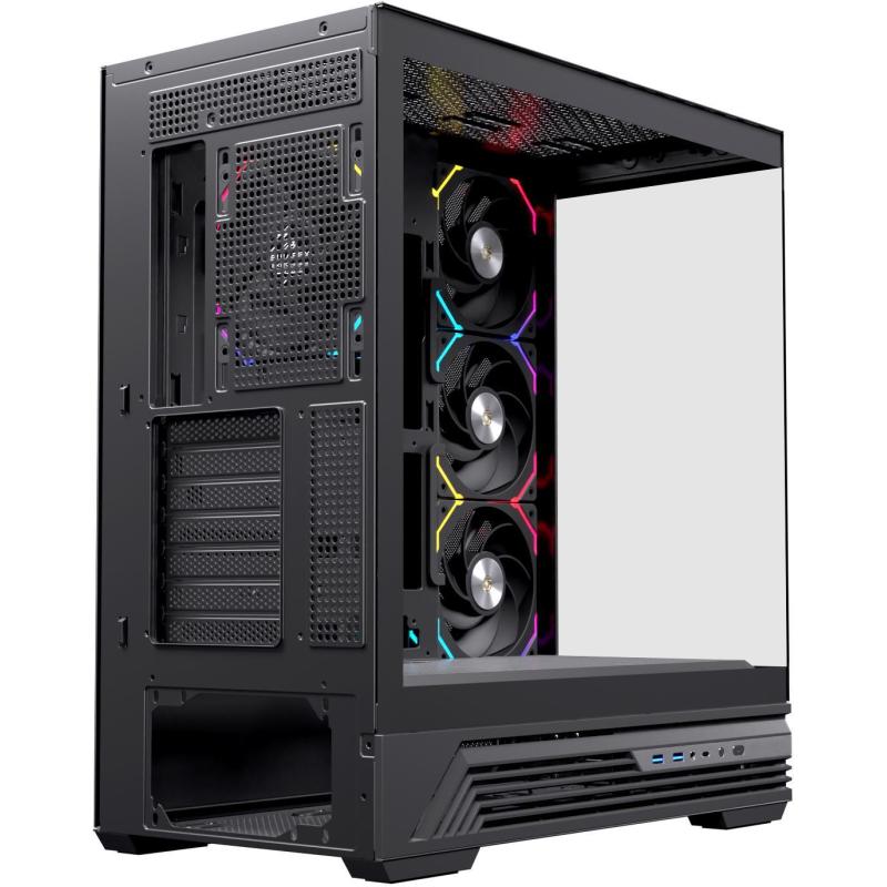 El sistema de refrigeración es uno de sus puntos más destacados. Incluye tres ventiladores laterales de 120 mm y un ventilador trasero de 120 mm, asegurando un flujo de aire óptimo para mantener bajas las temperaturas. Además, soporta refrigeración líquida con compatibilidad para radiadores de hasta 360 mm en múltiples ubicaciones. La velocidad del ventilador, regulable entre 800 y 1600 RPM, permite un equilibrio perfecto entre rendimiento y nivel de ruido. Su filtro anti-polvo y el sistema de gestión de cables garantizan una instalación limpia y libre de obstrucciones.