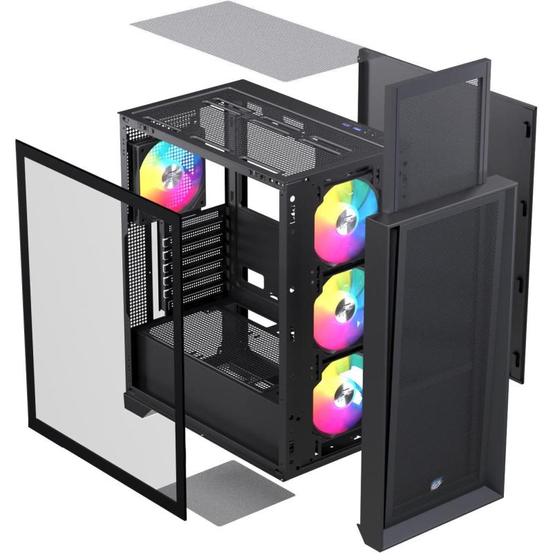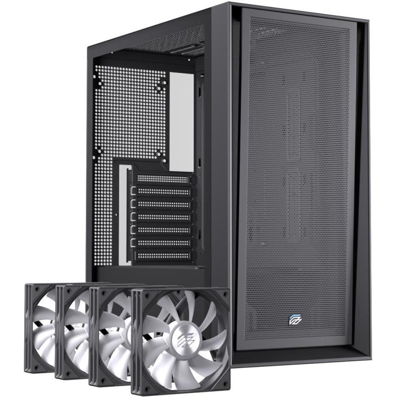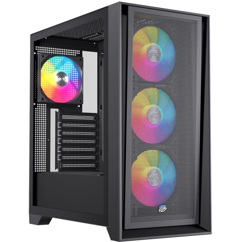 Torre Einarex Pulse P600 Core RGB Black ATX micro Mini-ITX con panel de vidrio templado 4 ventiladores RGB gran capacidad de enfriamiento Negro
