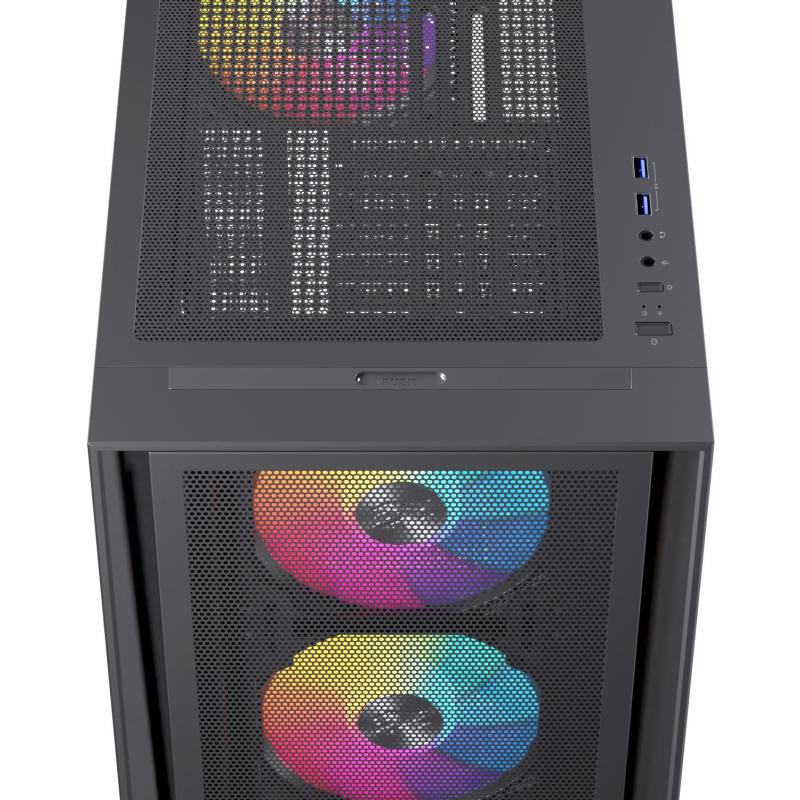 ILUMINACIÓN RGB PERSONALIZABLE: Disfruta de un sistema de iluminación RGB en los ventiladores frontales, que añade un toque vibrante a tu configuración. Con múltiples colores y efectos, esta torre gaming transforma tu espacio en una experiencia visual inmersiva.