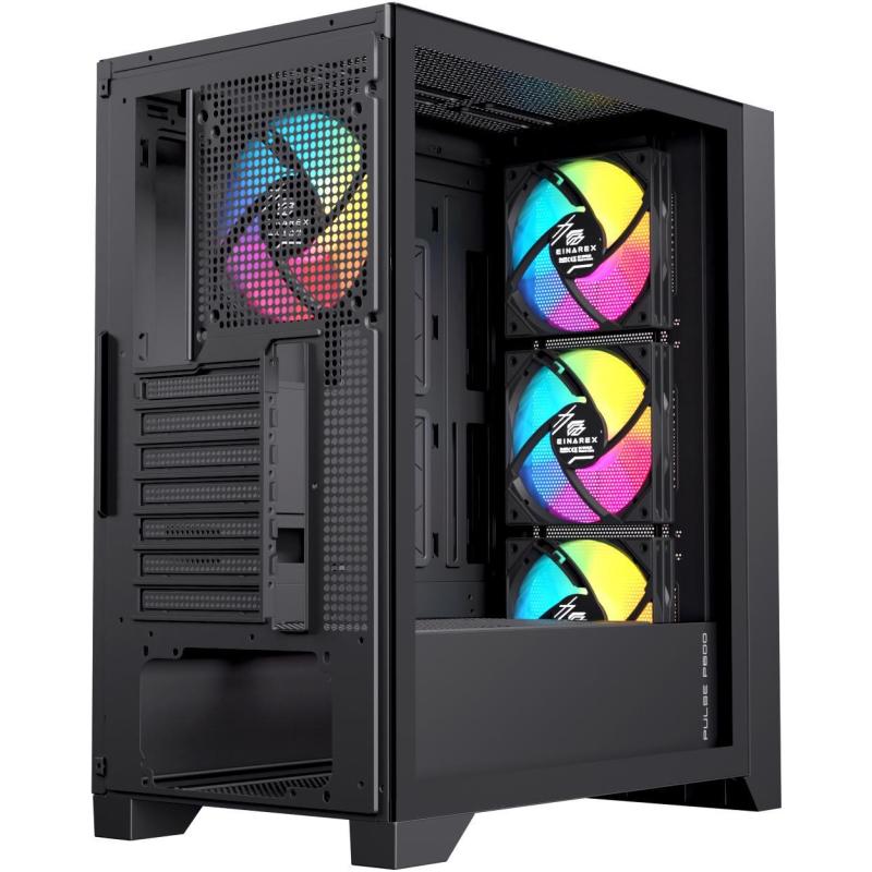 Torre Einarex Pulse P600 Core RGB Black ATX micro Mini-ITX con panel de vidrio templado 4 ventiladores RGB gran capacidad de enfriamiento
