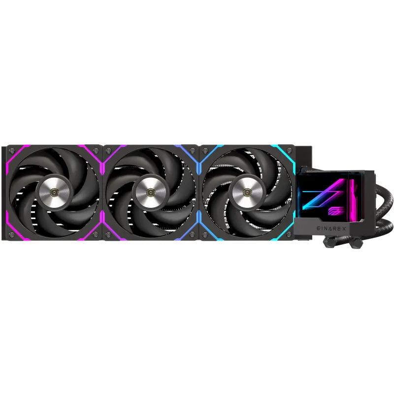Sistema de refrigeración líquida todo en uno Einarex VERT 360 RGB Black con 3 ventiladores RGB compatible con múltiples sockets y alto rendimiento térmico silencioso.