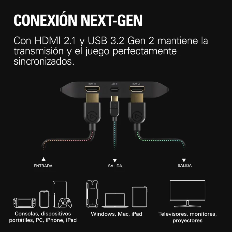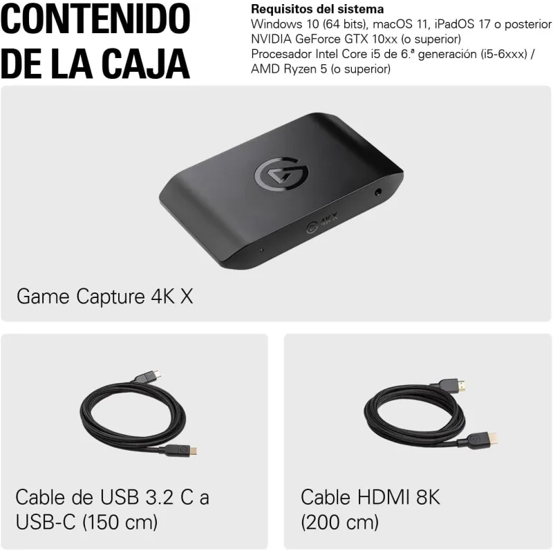 • Buscas conexión por USB 3.2 GEN 2 (3.1 GEN 2) para integrar la captura en tu PC.